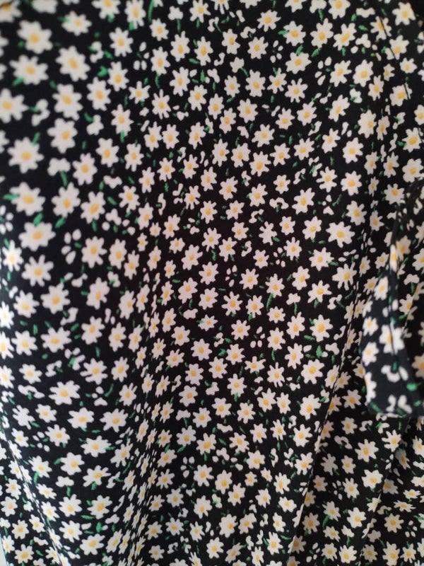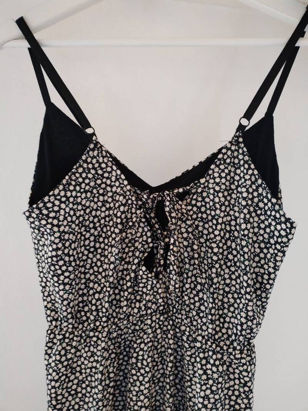 Aux jolis motifs pâquerettes, avec bretelles réglables, rembourage léger à la poitrine pour un joli rendu, col V et lien de serrage au dos